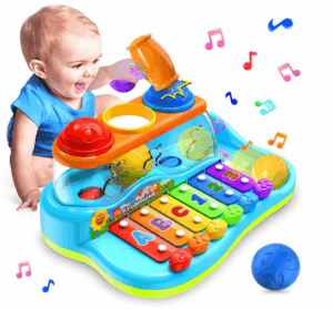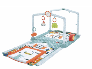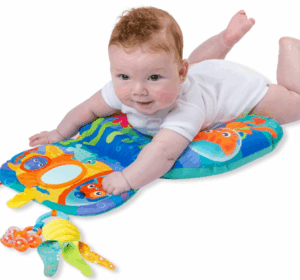 helps babies develop motor, visual, and auditory skills while encouraging crawling.
